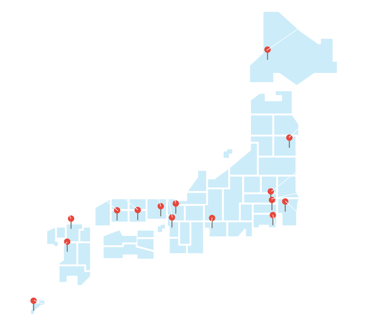 全国36ヵ所に展開するロードサービスの拠点では、ロードサービスのイメージを一新すべく、職場環境の設備も強化。 休憩室や男女更衣室はもちろん、会議室も完備し、従業員に寄り添った職場環境の改善に取り組んでいます。 今後も事業拡大に伴い、拠点を年々増設していきます。
